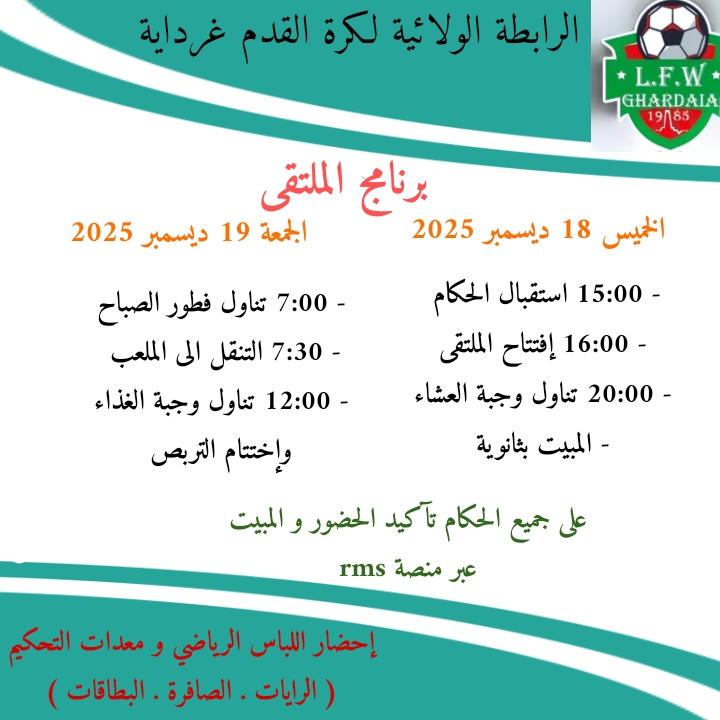 Tous droits réservés © 2014 - 2025 Ligue Wilaya de Football - Ghardaia.